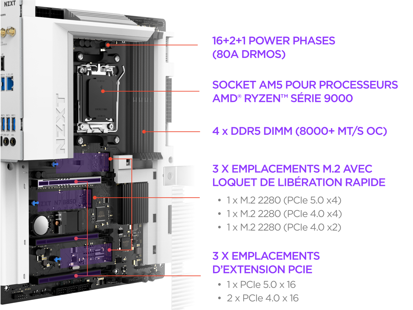 - Socket AMD® AM5 : Prêt pour les processeurs desktop AMD® Ryzen™ des séries 9000, 8000 et 7000.