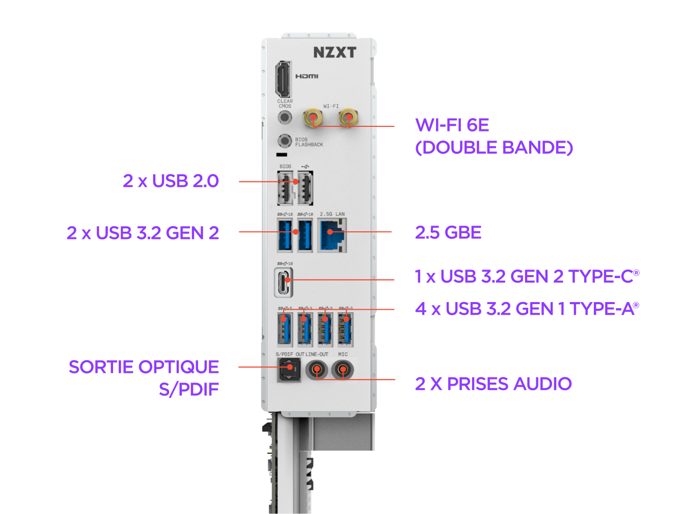 - Connectivité rapide : USB 4 (40 Gbps), Wi-Fi 6E et 2,5GbE pour des transferts rapides et une latence réseau minimale.
