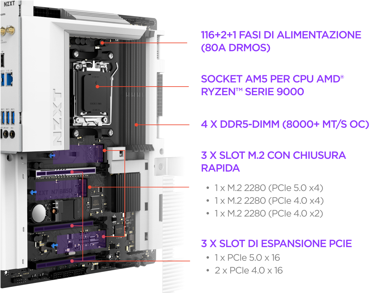 - Socket AMD® AM5: Compatibile con processori desktop AMD® Ryzen™ serie 9000, 8000 e 7000.