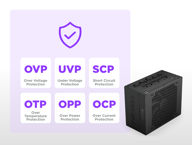 The C850 SFX Gold is an efficient, compact solution built for your small form factor (SFF) setup. It's fully ATX 3.1 compliant and includes a 600W 12V-2x6 connector, ensuring steady performance for demanding graphics cards. Experience stable, quiet, and cool power delivery, all within a tiny footprint.