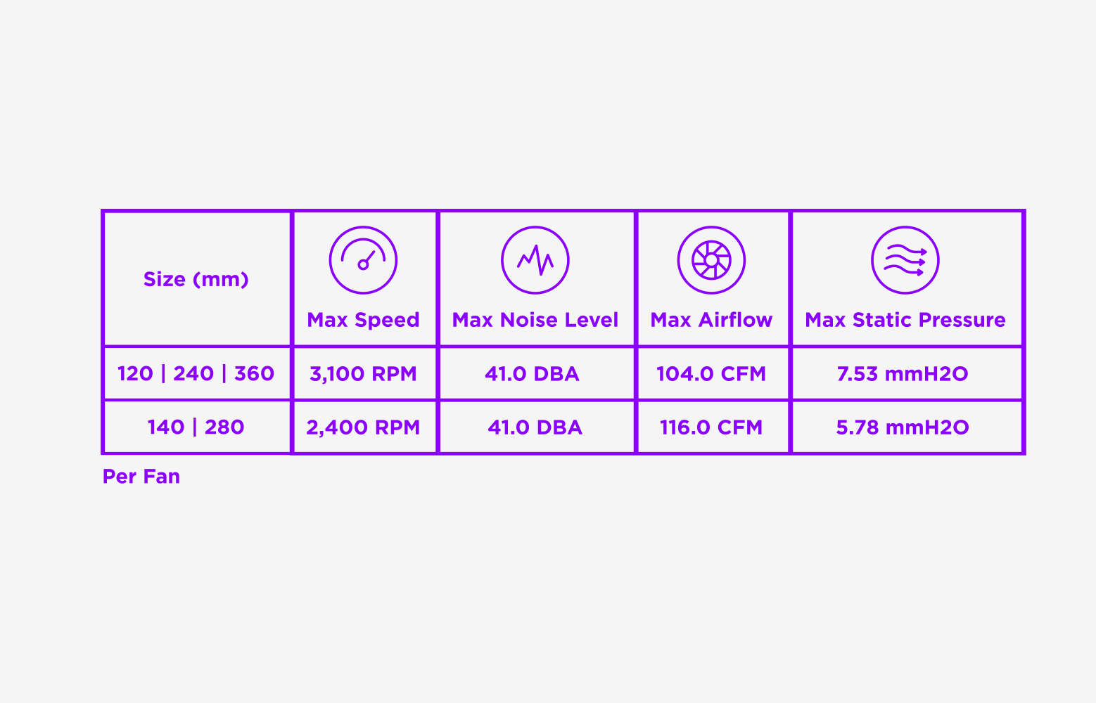 The NZXT Performance Fans deliver powerful, quiet cooling with LCP construction, optimized blades, and a hybrid bearing system for superior airflow and durability. A reinforced core, advanced motor, and subtle RGB lighting combine performance and style for any gaming PC.